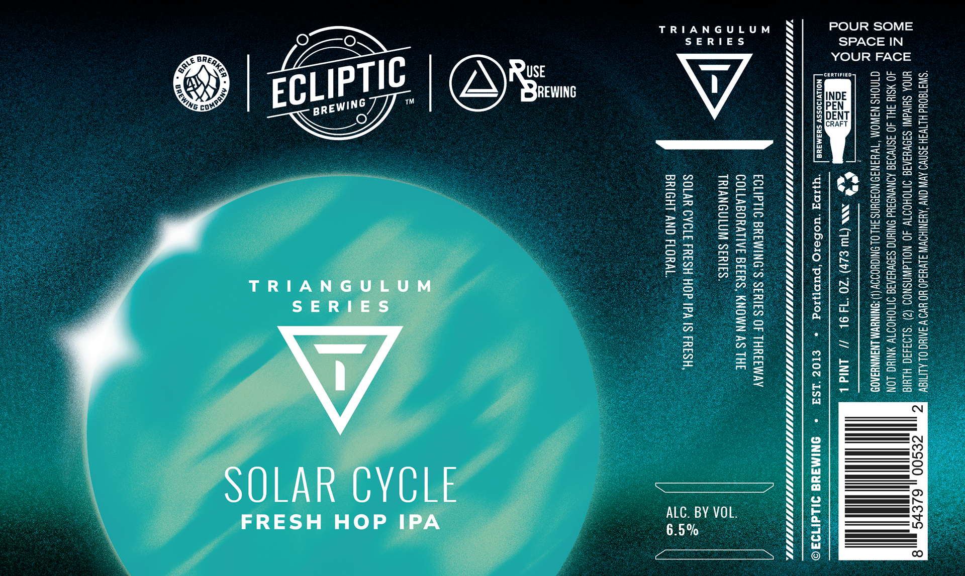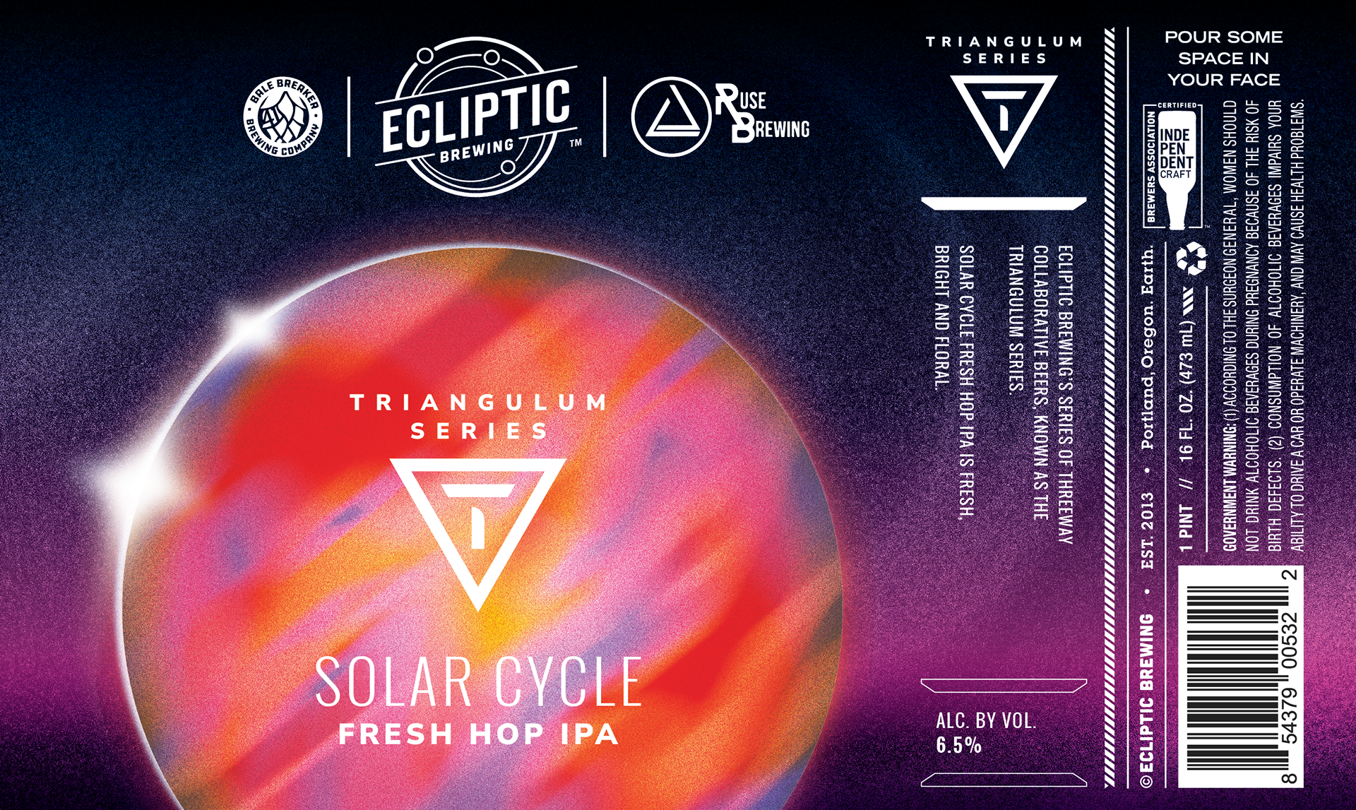 This is my custom beer label design for Ecliptic Brewing's Triangulum Series. For this project I was tasked to develop a template to showcases creative branding and visual design that captures the cosmic essence of the brewery. See how we brought this award-winning concept to life. Enjoy some of the initial concepts that didn't make the cut at the bottom.