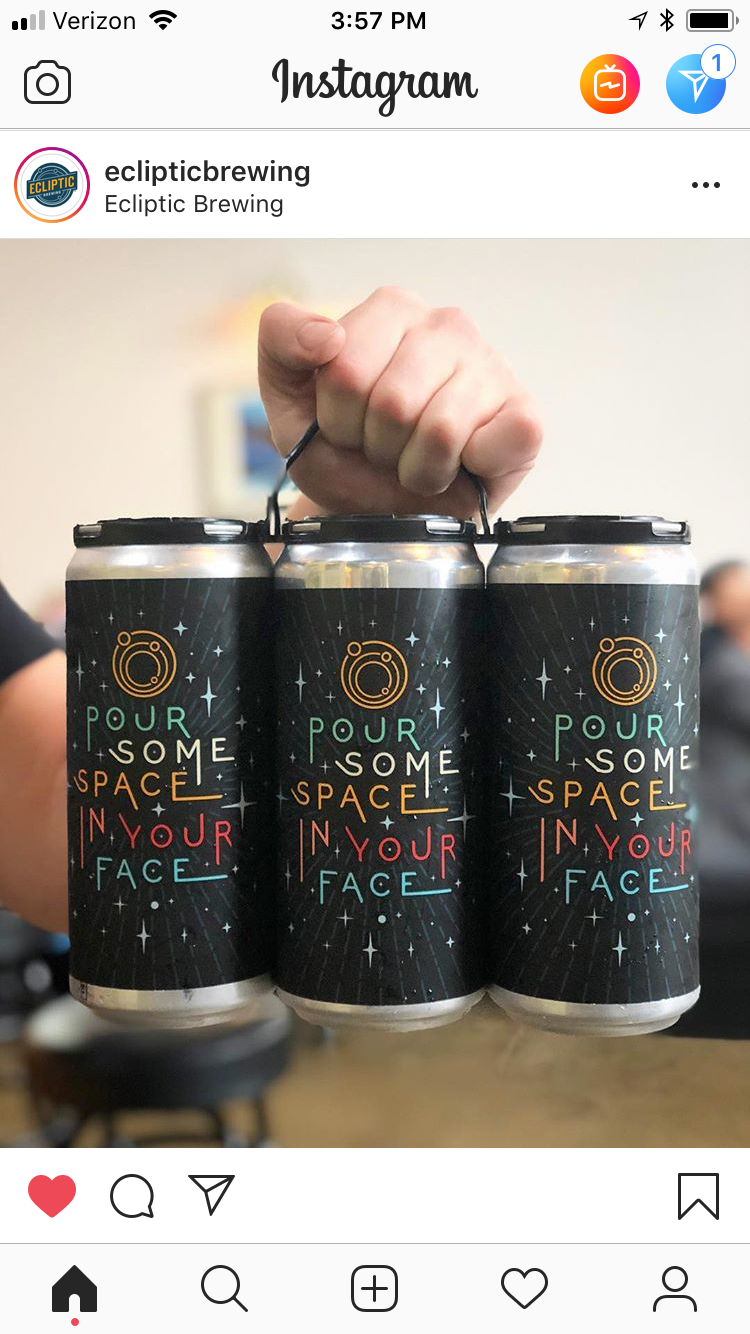 Ecliptic Brewing requested a crowler label for their to-go crowler beers. For the uninitiated, crowler cans are 32oz big boy cans, able to be filled and capped on site so you have a fresh can of beer to take with you and open when you like.